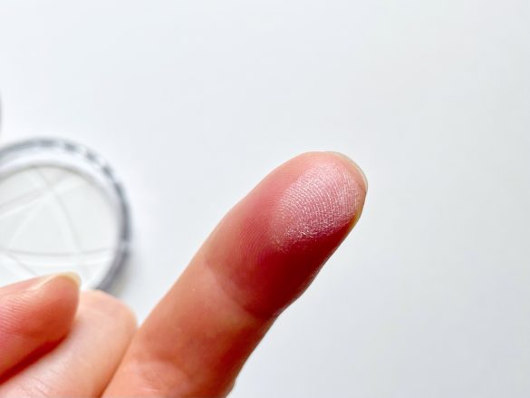 パウダーを手に取ると、ベビーパウダーのようなサラサラな感じ。保湿成分も配合されているので、粉浮きすることなく肌にしっとり馴染みます。