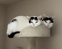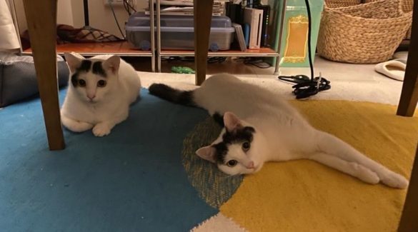 「猫の首が2つ?」な写真にびっくり!センター分けと散切り頭がかわいい保護猫シスターズ