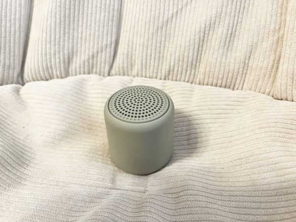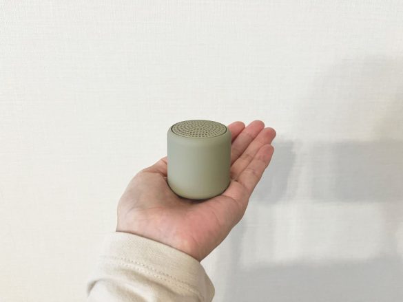 それにしても手のひらにすっぽり収まるほどのコンパクトサイズで、想像よりも遥かに小さいことにびっくり!重量もわずか約59g。本当にこんな小ささできちんとスピーカーとしての役割を果たしてくれるのだろうか…。