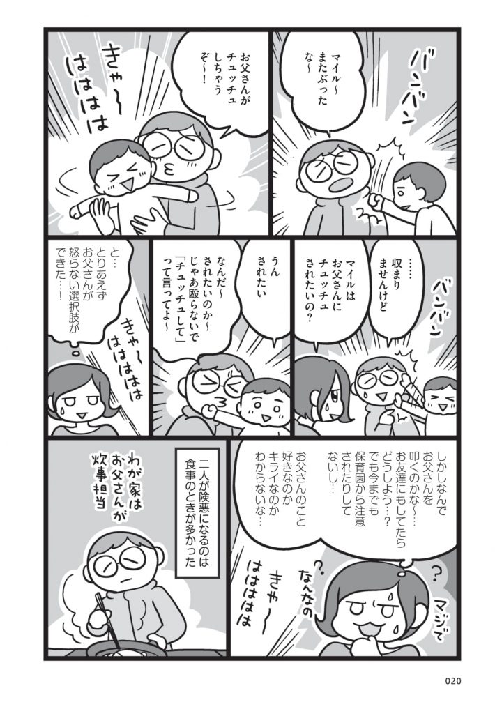 コミックエッセイ『子どもにキレちゃう夫をなんとかしたい!』(水谷さるころ著/山脇由紀子監修)では、5歳の息子に対して理不尽にキレたり手をあげたりしてしまう夫の問題に夫婦で向き合った様子が、妻の目線で描かれています。