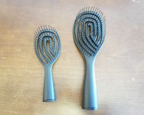 パッと見ではしゃもじにブラシが生えたような不思議な形をしています。ほかのヘアブラシとの違いは、ブラシ板の部分がうずまきのようにあいていて、スケルトン状態になっていること。風が通りやすくなり、普通のヘアブラシよりも早く髪を乾かせるというわけです。