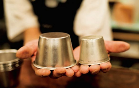 カウンターの奥から出された通常の型(右)とヘッケルンの型(左)。「昔はジャンボなんて言葉なかったんだよ」とマスター