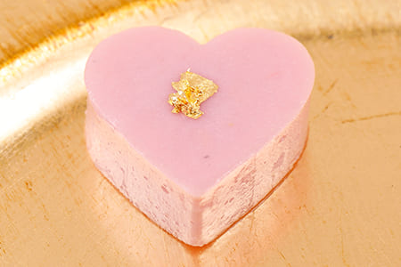 さつま揚げの一部をご紹介すると、ひときわ目立つ真ん中のさつま揚げは「ゴールドハート」。バレンタインらしく、ハートをかたどった揚げかまぼこで、中央に金箔が添えられた、贅沢な一品です。