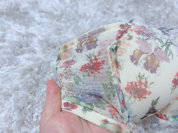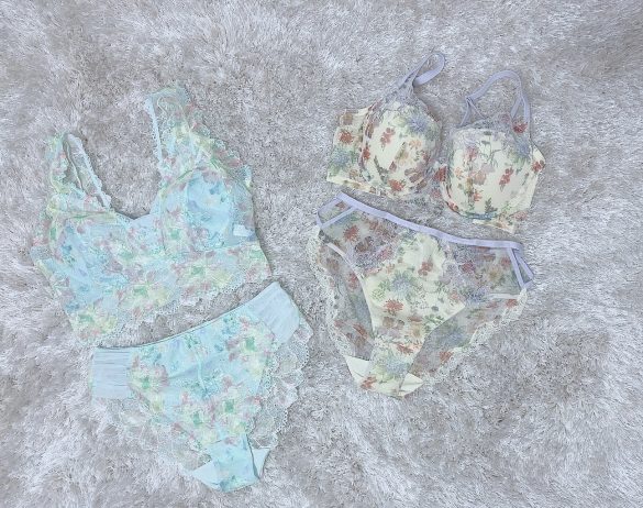 今回のシリーズはワイヤーブラがチュール、ノンワイヤーはレースにお花の柄がプリントされています。