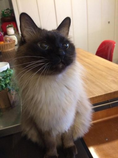 つい触りたくなるような、ふわふわの長毛とブルーの瞳が美しいボスくんは、10年以上前、Reoninさん(@ninreoshu)宅に迎え入れられたラグドール。