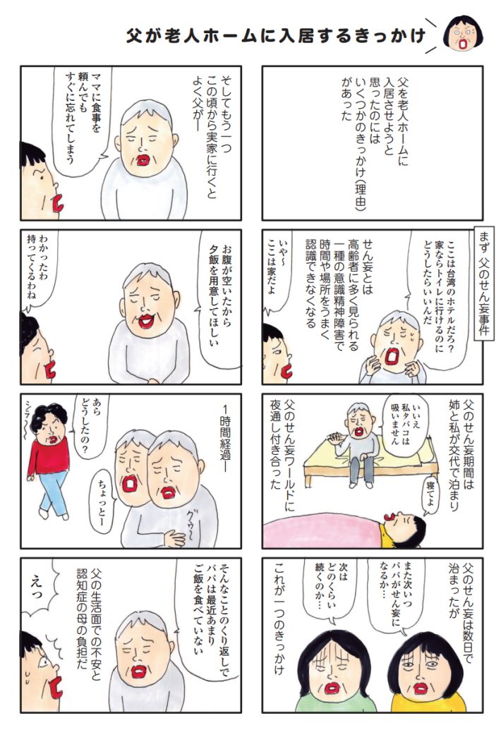 カータンさんは月間約800万アクセスの人気主婦ブロガー。前著『健康以下、介護未満 親のトリセツ』から3年、父の体はさらに脆弱になり母の認知症も進行の一途をたどりました。本書は、カータンさんが姉のかおさんと協力して、父・ヒロシさんの老人ホームを探すところからはじまります。