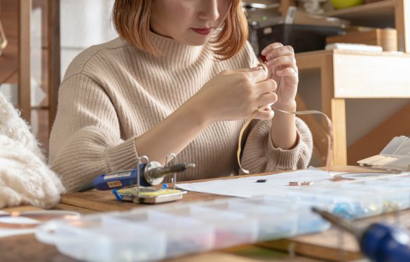 するとOさんはニッコリと笑って、そのカードホルダーは手作りだと教えてくれました。タティングレースという細い糸を編んで作ったものだそうです。よく見ると、ピアスもハンドメイドのタティングレースを使った素敵なものをつけていました。