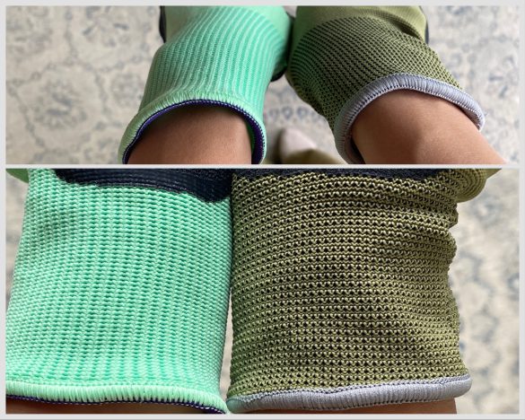 しかし、手のひらの加工ゴムに大きな違いが! ワークマンは表面がザラザラしていて厚めの紙やすりのような感触。一方のダイソーは、モチモチしていて指サックのような感触です。
