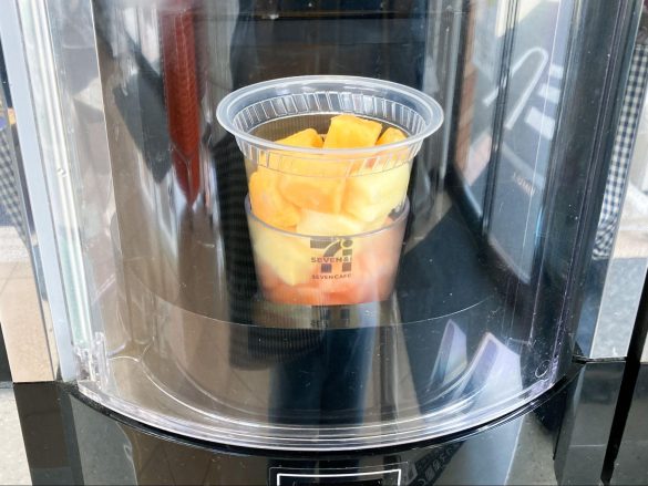 筆者は舌に甘さが残る感覚が苦手で普段ジュースを飲まないのですが、マンゴーパインスムージーは思ったよりも甘さ控えめなのが好印象。砕かれたマンゴーの果肉が少し残っていてつぶつぶ感があります。