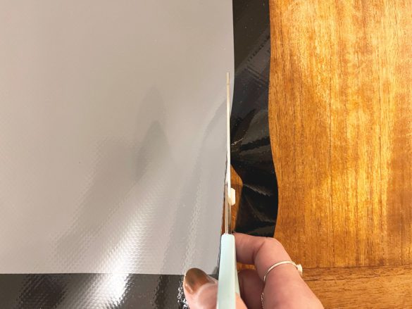 我が家の場合、両サイドの黒い部分をカットしたら幅はぴったり収まりました。奥行きはもう少し切らなければならなかったので、一旦庫内に敷いてみて手前にはみ出た分を切ることに。ズボラな筆者ははみ出た部分を折り曲げて大体ここらへんか……と完全に目分量でカットしてしまいましたが、失敗しないためにも定規やカッターを使うことをおすすめします。