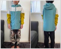 今回、小学2年生の息子が着たのは120cmのクレイジーターコイズ。身長130cmで細身の体型なので、サイズ感はぴったりです。