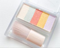 パステルヴェールコンシーラーのカラー展開は、ライトベージュとベージュの2つです。より自然な仕上がりで肌トーンにもマッチする「ベージュ」を選びました。  ライトベージュ・ミントグリーン・レッド・イエロー・パープルの5色がセットされています。付属のブラシを使って横へ2~3回なでるように粉を含ませると、ベージュになるようにつくられています。