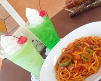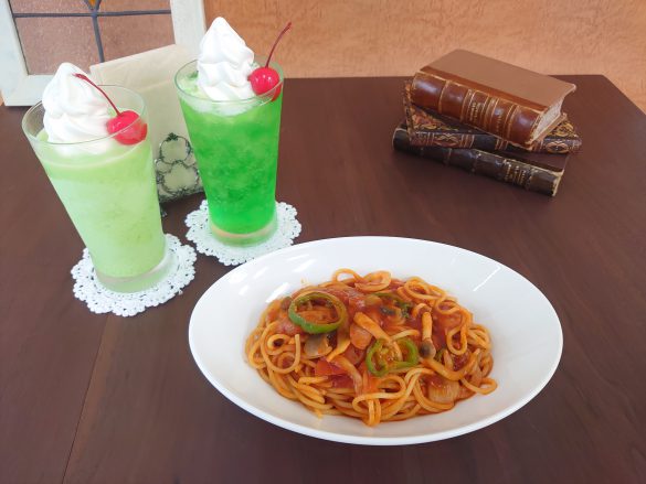 改良に改良を重ねてできたというナポリタンソースの安心感。懐かしい味わいはもちろん、レトロな見た目も印象的な2種類のクリームソーダは、異なる味わいが楽しめます。