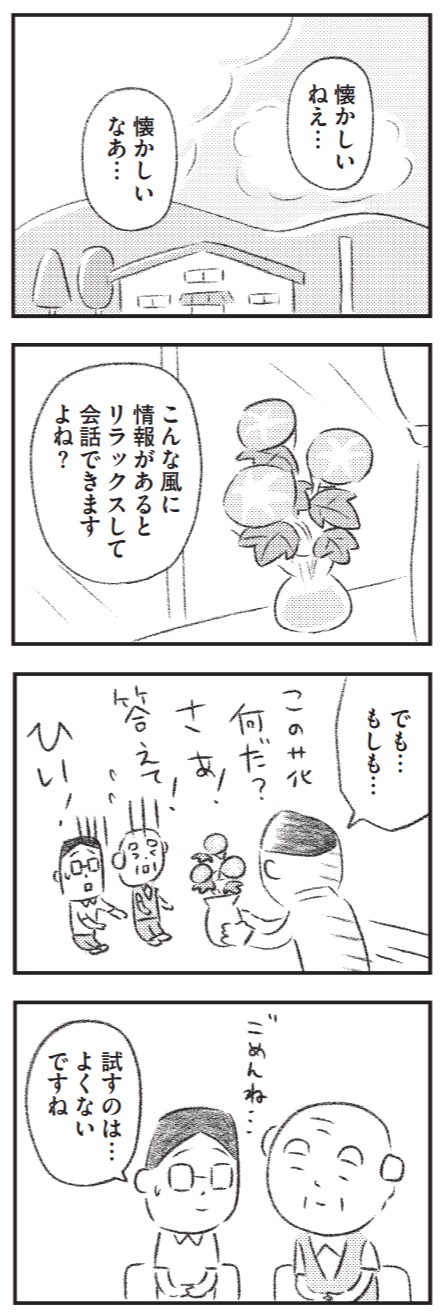 本編でも、“モノ盗られ妄想”という認知症症状のひとつとして冒頭から登場するのですが、実はこの妄想、「患者のお世話を一番している人」「もっとも頼りにしている人」に対して現れる症状なのだそう!