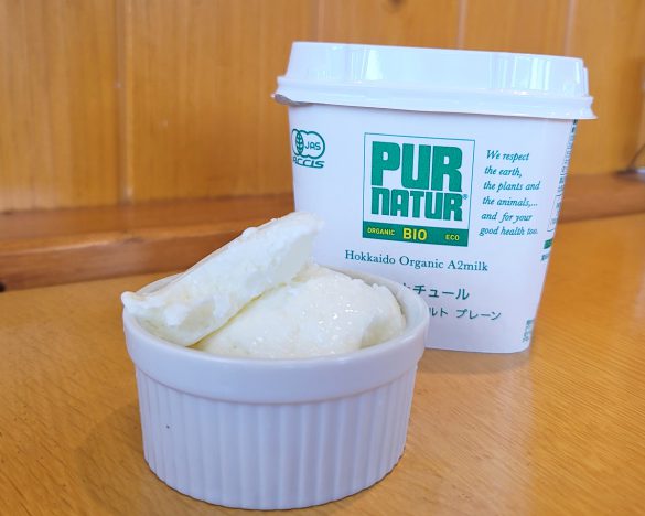 カネカが生産する別海ウェルネルファームの生乳のみで作った「ピュアナチュール オーガニックヨーグルト プレーン(494円)を現地でいただいたのですが、おいしい生乳を原料に特別製法で作られたヨーグルトは、とにかく文句なしのおいしさでした。