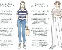 しかし、その一方で選び方や着こなし方を間違えると、途端に子どもっぽくも見えてしまうのがボーダートップスの難しいところ。そこで今回は、子どもっぽく見えるNGコーデと大人に似合うボーダートップスコーデをご紹介します。