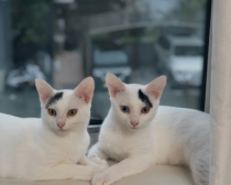 左右対称な模様を額に持って生まれてきた2匹は、とても仲良し。異なる個性を存分に披露し、マイペースな日々を楽しんでいます。