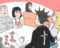 「妹の彼氏は、黒い襟付きシャツに黒いズボンの小柄な男性でした。ズボンには太いシルバーのチェーンが付いていて、黒い襟付きシャツの後ろには十字架に架けられたキリストの刺繍がしてありましたよ」