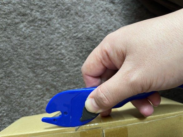 はさみだと、段ボールとテープの隙間に刃を入れるのがうまくいかずイラっとするし、カッターだと刃が出っぱなしになって危険なので、いちいち刃の出し入れをしなければならないのが面倒。