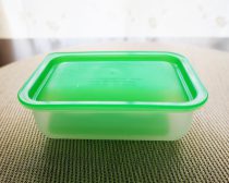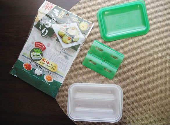 パッと見たところでは、どこにでもある保存容器です。ところが、きゅうり色をした外蓋を開けてみると、容器の形状とセット内容に特徴があることがわかります。