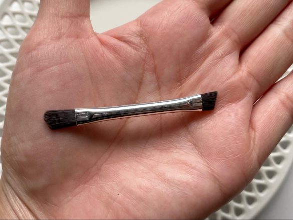 付属のブラシは斜めにカットされてコシのあるワックス用と、長めで柔らかく斜めにカットされたパウダー用ブラシのダブルエンド。ワックス用は眉尻までしっかりと描け、パウダー用はふんわりと色がのる設計です。