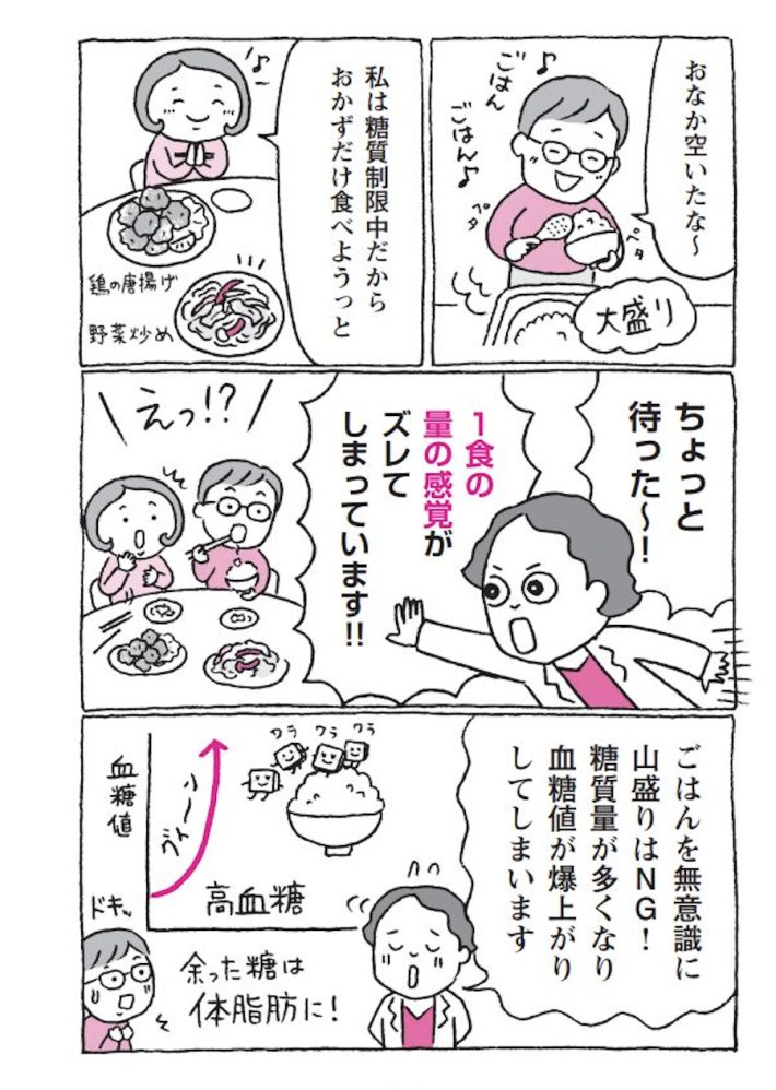 「厳しい糖質制限よりも、食を楽しみながら続けられる糖質コントロールを!」。これぞ本書が掲げるダイエット。「糖質コントロール=血糖コントロール」でもあります。