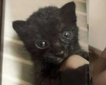 ご近所さんのブルーシートにいた生後1ヶ月ほどの黒猫をお迎え