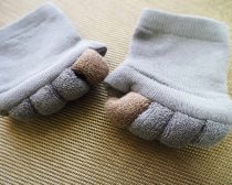 筆者が購入したのは、グレーの「足指ソックス」。シンプルなカラーをベースに親指部分のベージュがワンポイントになっているのと、足指の仕切りがパイル生地でモコモコ・ボリュームがあるのがとってもかわいい!