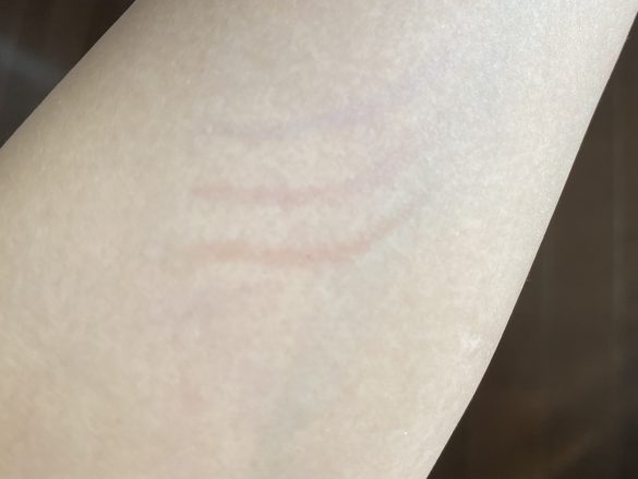 実際に腕に2度塗りしてみると、通常のアイライナーよりもかなり薄い発色であることがわかります。