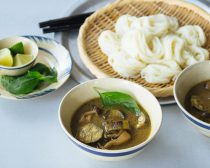 arikoの日々、麺、ごはん 市販のレトルト食材を簡単アレンジ! スパイシーなグリーンカレーがのど越し良く楽しめる、簡単なのに凝って見えるメニュー。 材料(2人分) そうめん…3束 なす…2本 しめじ…1パック めんつゆ(3倍希釈)…100ml 水…300ml グリーンカレー(レトルト)…1袋 ライム(8等分に切る)…適量 バジルの葉…適量 作り方 (1)なすはへたを除いて一口大に切る。しめじは石づきを除いて小房に分ける。 (2)鍋に湯を沸かし、そうめんを袋の表示時間どおりにゆでてザルに上げ、冷水で締めて水気を切る。 (3)別の鍋にめんつゆと水を入れて中火にかけ、沸騰したら1 のなすとしめじを加えて煮立たせ、グリーンカレーを加えてひと煮立ちさせる。 (4)器に(2)のそうめんと(3)のつけ汁をそれぞれ盛り、ライムとバジルの葉を添える。 ■ memo カレーつけ汁に鶏肉やパプリカ、ピーマンなどを加えて具だくさんにすれば、食べ応えがぐっと増します。麺は稲庭うどんでもよく合います。