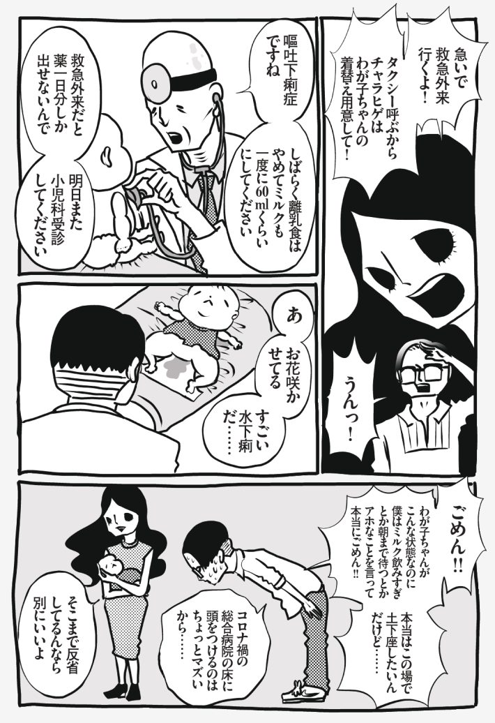 夜中に赤ちゃんが何度も嘔吐!どうしたらいい!?/峰なゆかの育児漫画79話