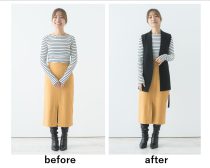 ――まずは、私がよく着ているボーダートップス+タイトスカートには何か合わせられますか? どちらも定番アイテムですが、地味になりがちで……。