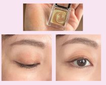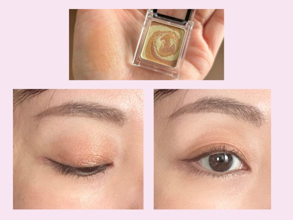 まぶたのくすみが気になり、黄み寄りの筆者の肌には、「MB003 マーブルオレンジ」がぴったりでした。このカラーを使って奥行きのある眼差しに仕上がるか、実際に試してみました。