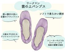 履きやすい機能靴がここまで話題になったのは、GUのマシュマロパンプス以来でしょうか。マシュマロパンプスはヒールタイプですが、ワークマンの雲の上パンプスはフラットシューズタイプなのが特徴です。また、使われている素材や柔らかく足に馴染みやすいソフトな履き心地です。