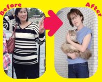 原田さんは1年で-17kgのダイエットに成功。体重は65kg→48kgに、体脂肪率は31.2%→20.5%に、洋服サイズはLL → Sに!
