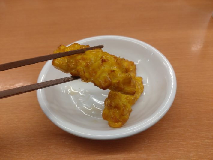 とうもろこしの香り揚げ 260円。とうもろこしをとても食べやすくしたとうもろこし