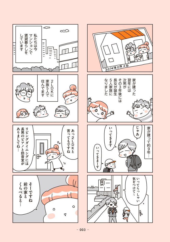 結婚して、子供が生まれて。家族が増えると自然に夢に描くのがマイホーム。『賃貸か持ち家か?こだわりマイホームを手放して賃貸生活でお金も貯まりました』KADOKAWA(MF comic essay)は、新築のマイホームから賃貸生活に逆戻りした、一家のコミックエッセイです。