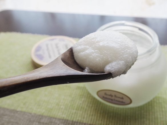 使い方は、髪全体を予洗いしたあと、濡らした頭皮にテーブルスプーン約1杯分を塗布。一度に使う量は、わりと少なめです。