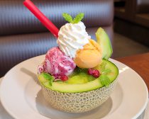 このメロンボウルは昨年も登場していましたが、大きな違いはアイス部分。昨年はメロンシャーベットとバニラアイスの組み合わせで、今年は色味、味、香りに奥行きを感じることができます。