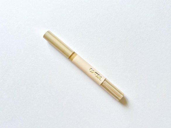 使うのは、ハイライト効果とカラーコントロール効果で肌悩みをさりげなく補正してくれるという、「エクセル サイレントグロウ コンシーラー(SG02 ベージュグロウ)」(税込1,650円)。ペンシルタイプのリキッドハイライトコンシーラーです。