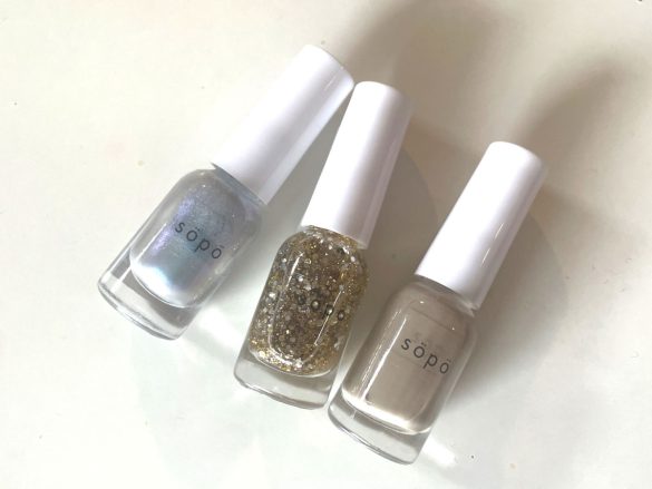 今回レビューするのは、2024年3月に発売された「sopo」の春夏コレクションのネイルポリッシュから、「24 クラウディミルク」「27 かみなりゼリー」「29 レイニースムージー」。(各税込660円。店舗によって取り扱いがない商品もあります)