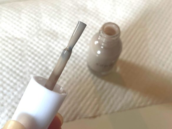 まずは「24 クラウディミルク」。ミルクティーのような、クールになりすぎないグレージュです。 ファミマネイル ハケは大きすぎず小さすぎずちょうどいいサイズ感。軽めのテクスチャーで、これは…すぐ乾くありがたいやつなのでは?