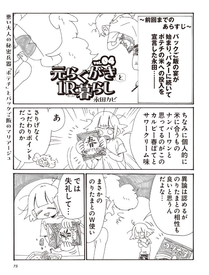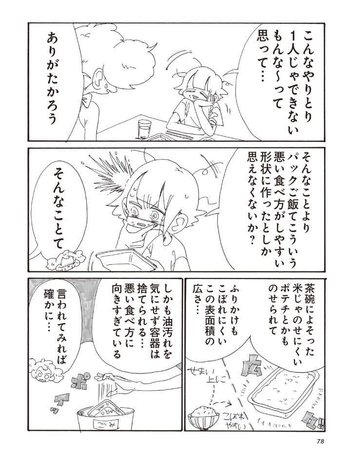 パックご飯は”悪い食べ方”に向きすぎる!?永田カビのマンガ 「元らくがきと1R暮らし」<4話目>