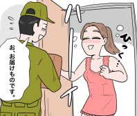 うっかりノーブラで玄関に出ちゃった!完全な“胸ポチ”状態に配達員もタジタジ