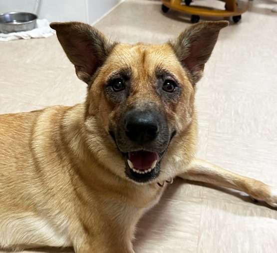 体重約25kgほどの大きな体で、目が合うと一瞬ひるんでしまいそうなメスのシェパードミックスのレオナ。
