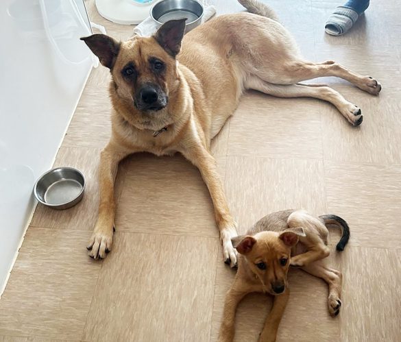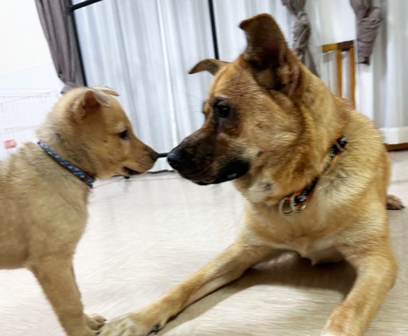 実は、この団体はこれまでに小型犬のみを保護してきており、大型犬の保護はレオナが初めて。しかし、レオナが人間を困らせるようなことは全くなく、むしろ前述のようにまだ小さい子犬のお世話をしてくれたりと、自然と預かりボランティアさんのサポートをしてくれました。