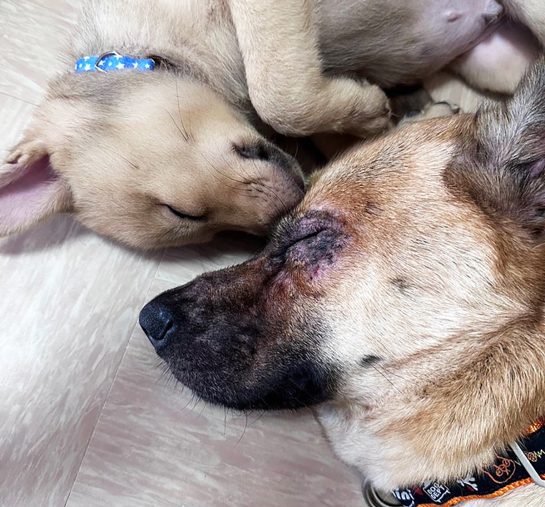 そして、レオナは自分より体が小さいワンコや、生まれたばかりの子犬のお世話が好き。子犬がいれば自ら静かに歩み寄り、一緒に遊んであげたり、添い寝してあげたりする母性あふれる優しさも持ち合わせています。