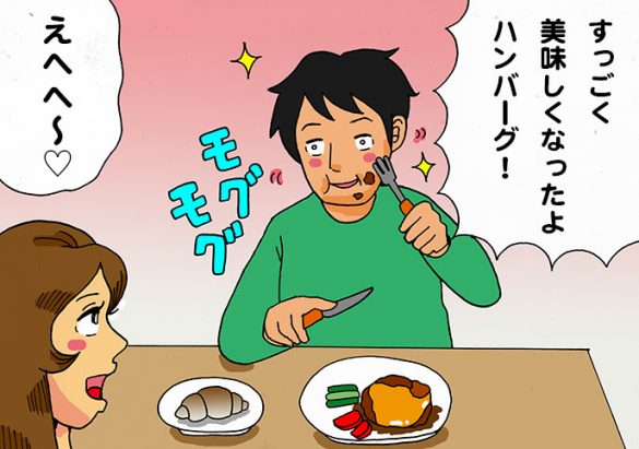 「ですが作ってくれたことが嬉しかったので、食事の後、2人でネット上のハンバーグレシピを見まくって、あーだこうだ言い合いながら研究したんですよ」