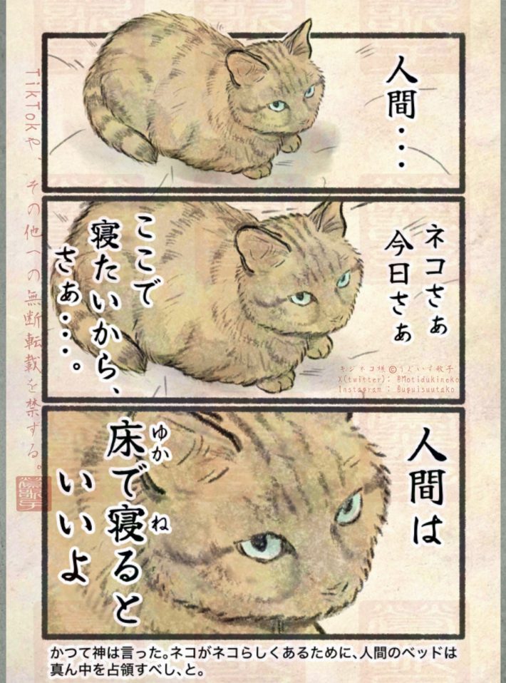 SNSで人気の“圧強め”ネコ様まんが。日本画タッチの源は、自衛隊で学費を稼いで美大で墨絵を学んだ過去にアリ?