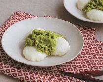 ③皿にヨーグルトもちを盛り、ずんだあんを添える。